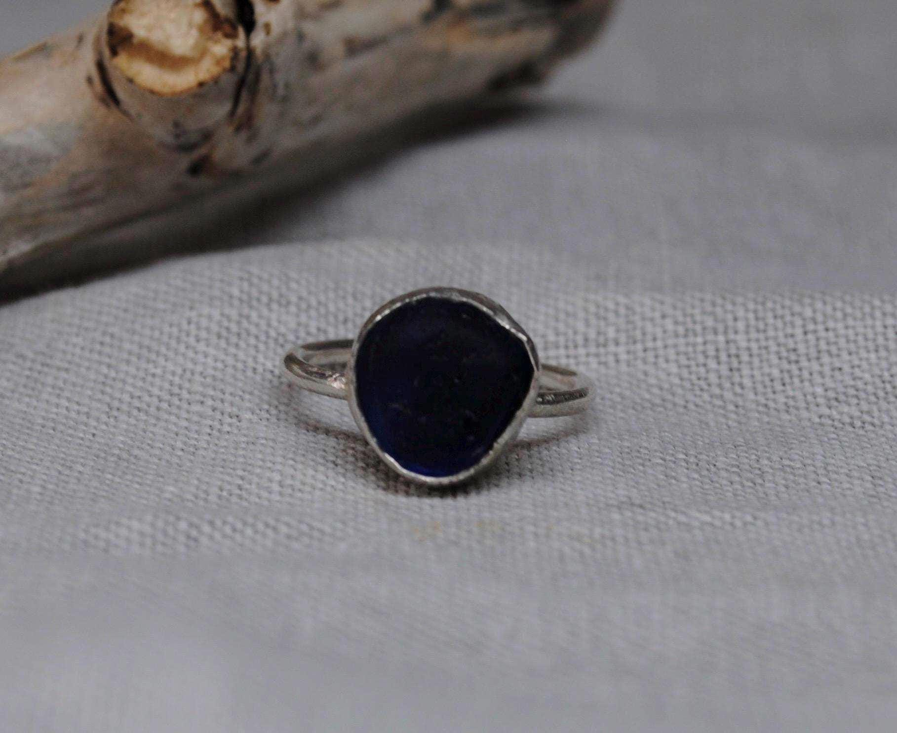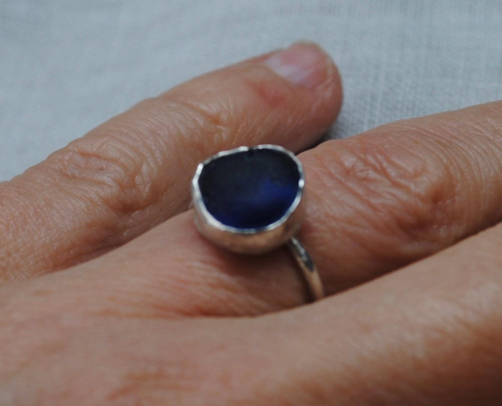 This is a very stylish sea glass ring - the colour being Dark Cobalt Blue, which is a very dark blue - appearing almost black at times, with the blue emerging in the light.